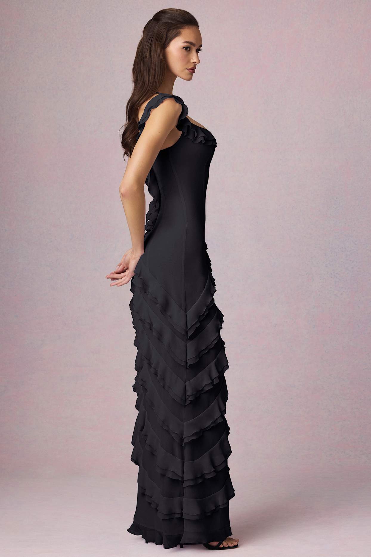 Pair with a sleek clutch and soft, loose waves for a classic look.