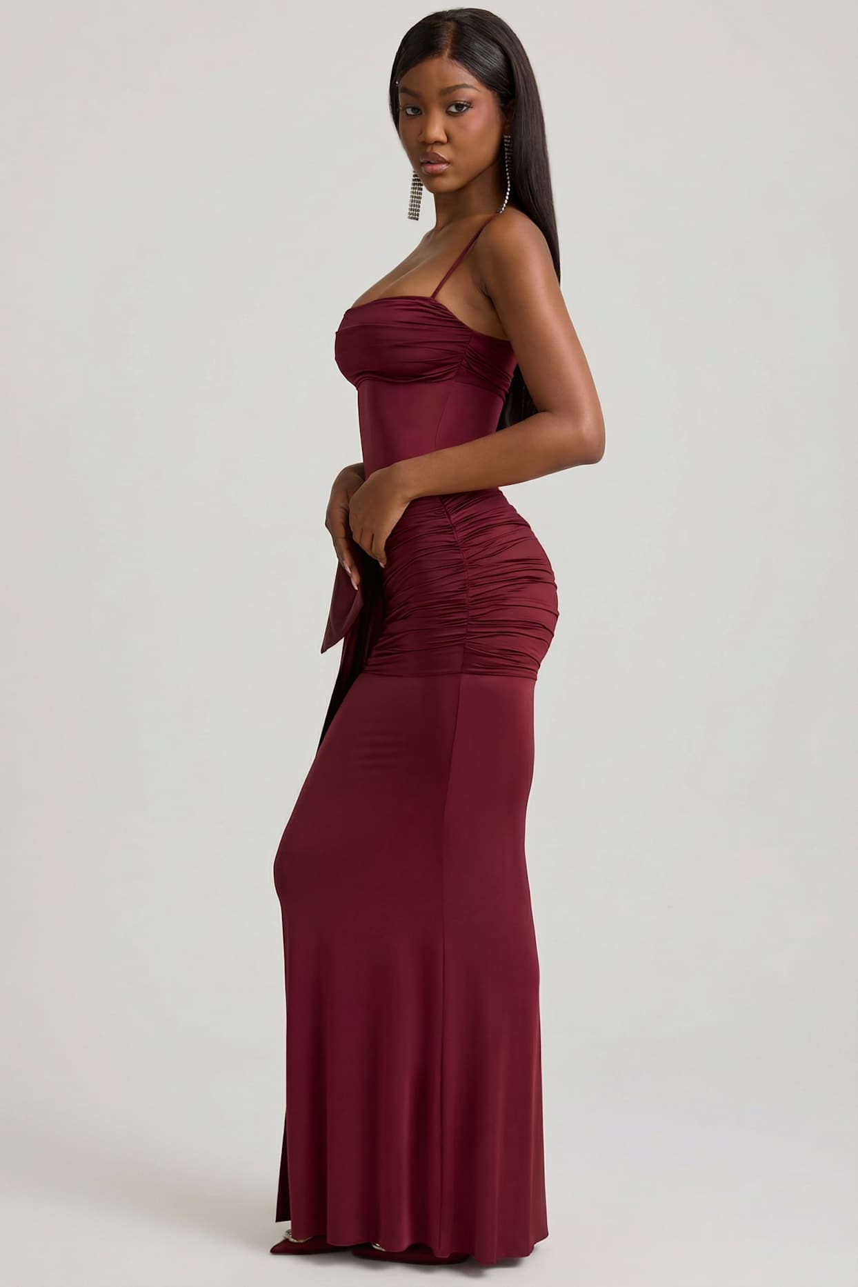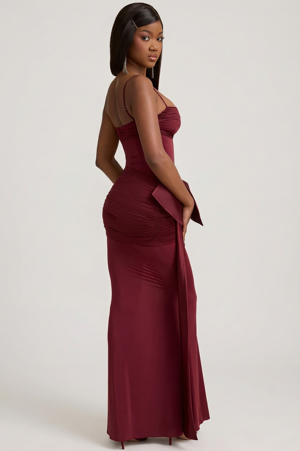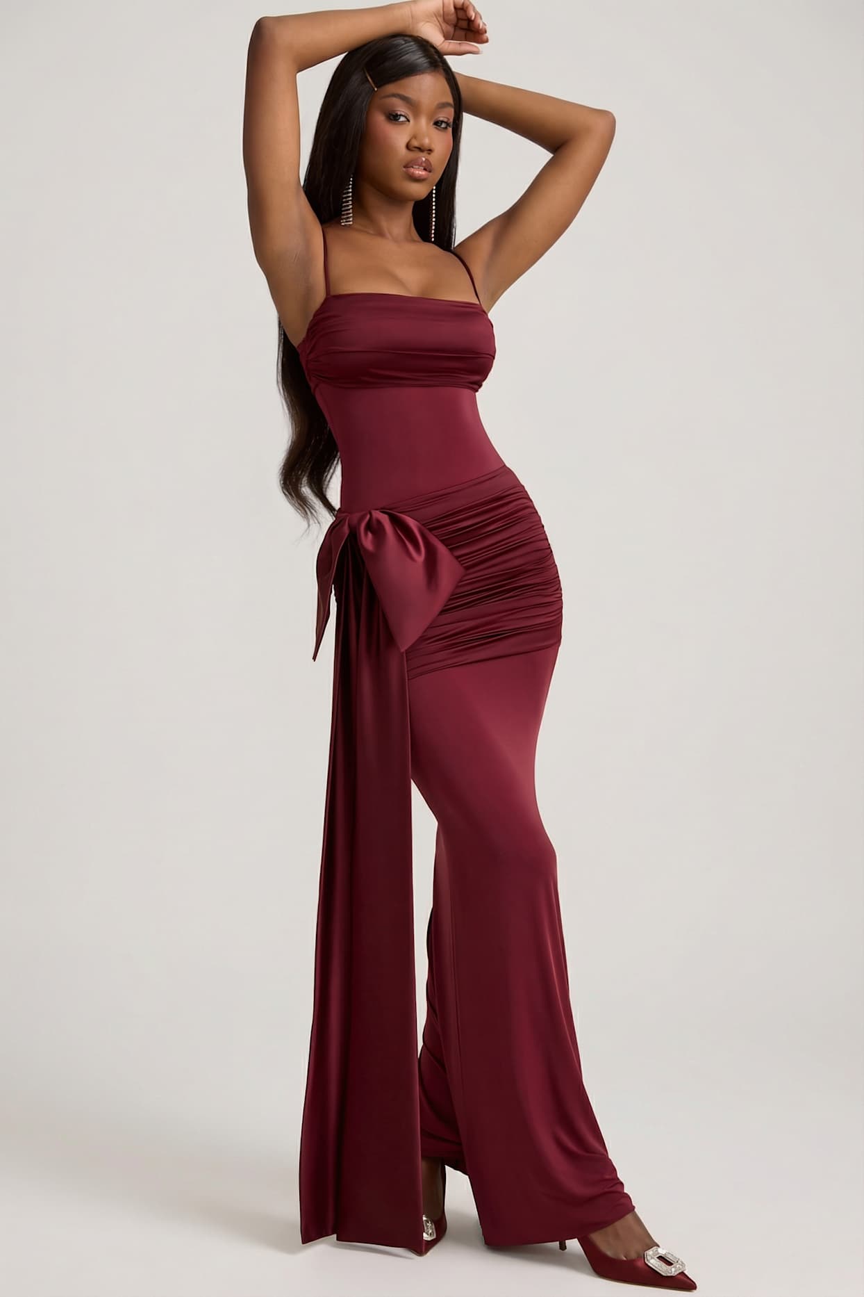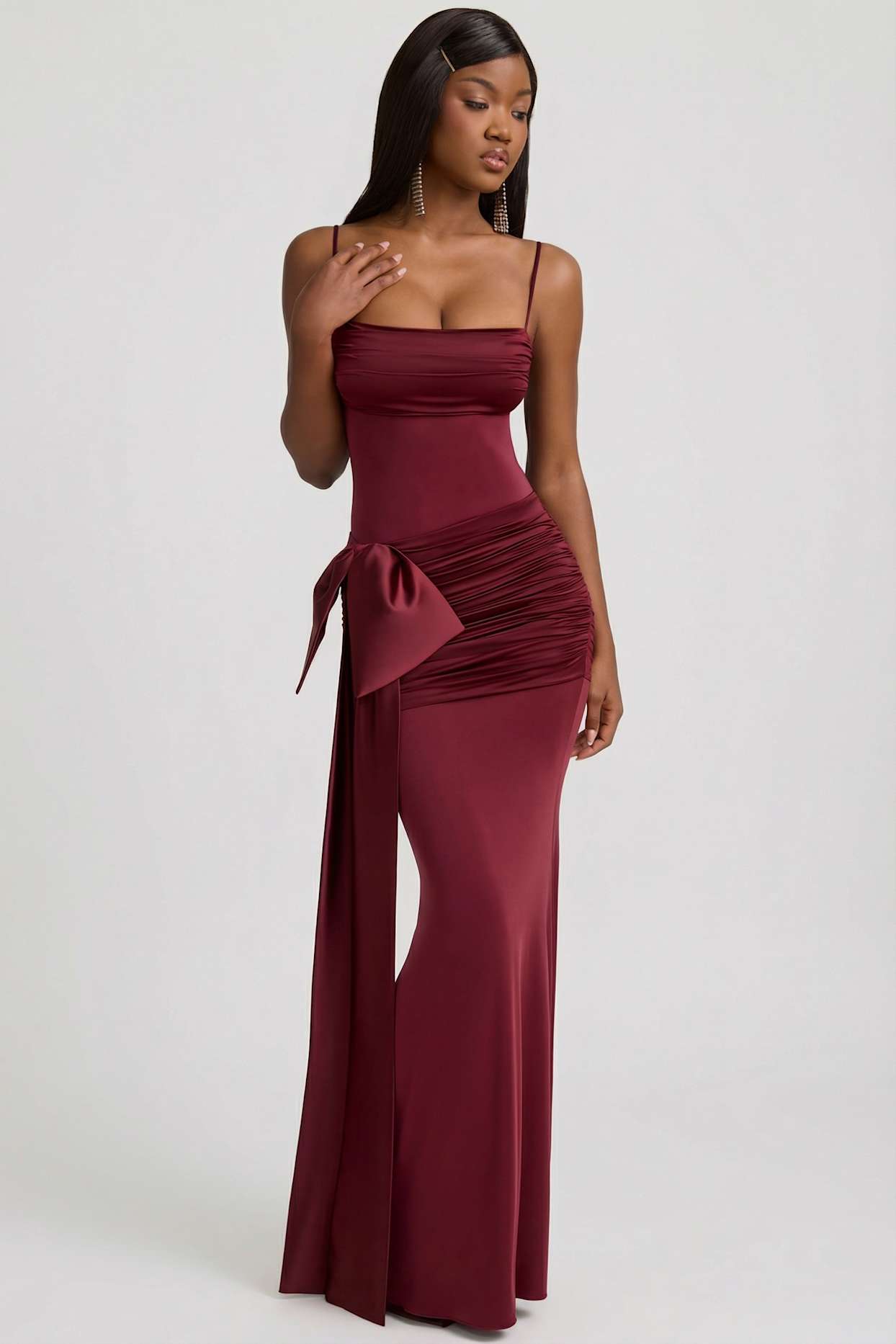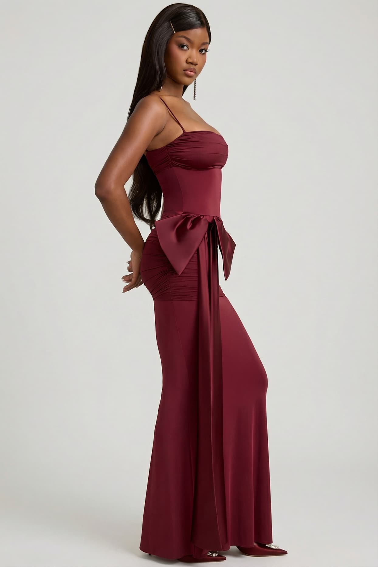 Premium satin jersey with sheer mesh panels at the waist and skirt, featuring a slinky jersey lining for a smooth, comfortable feel.
