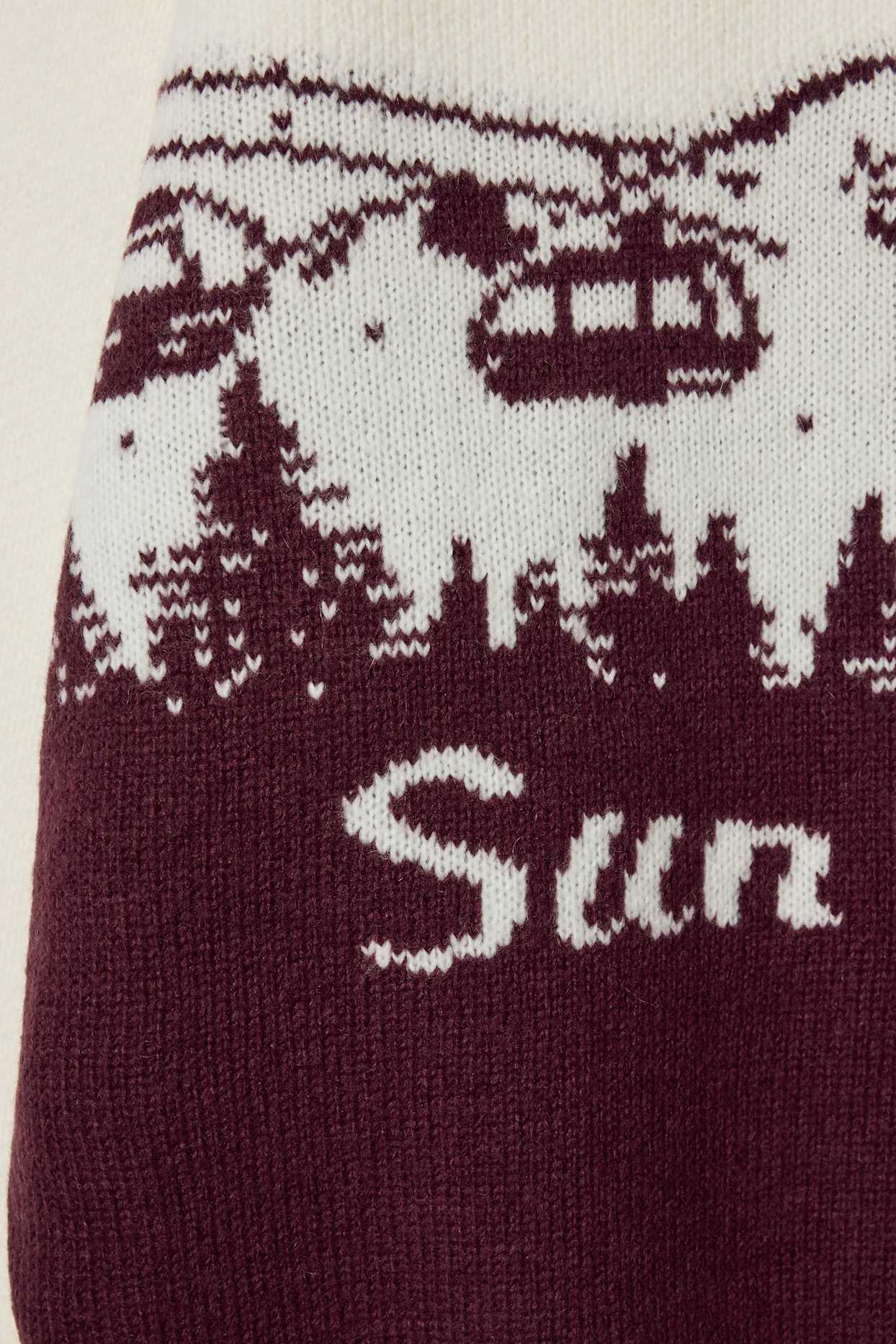 Soft jacquard knit fabric with an all-over alpine design and ribbed trims.