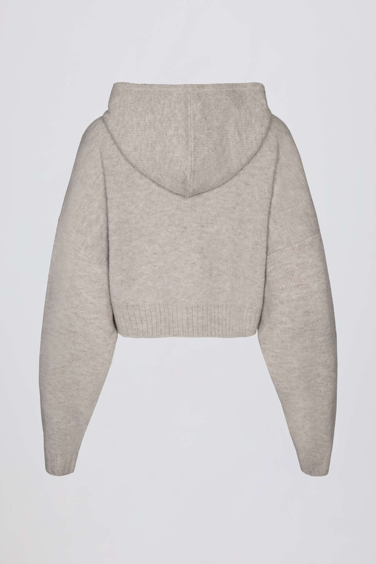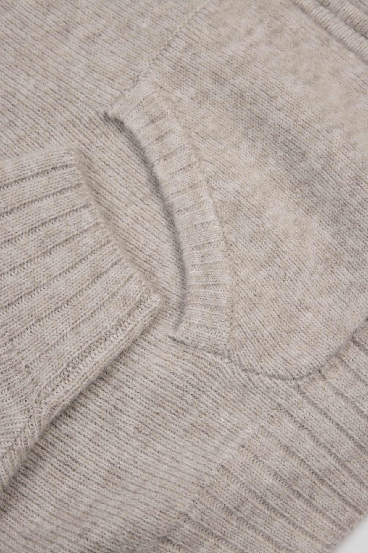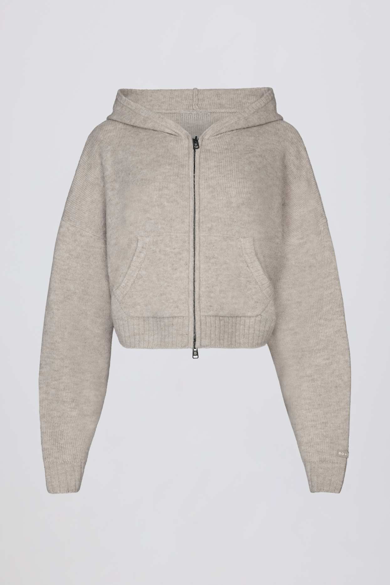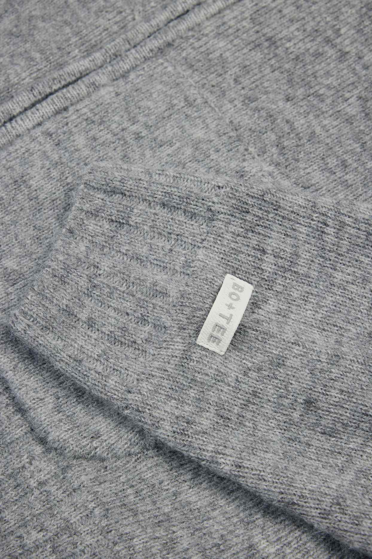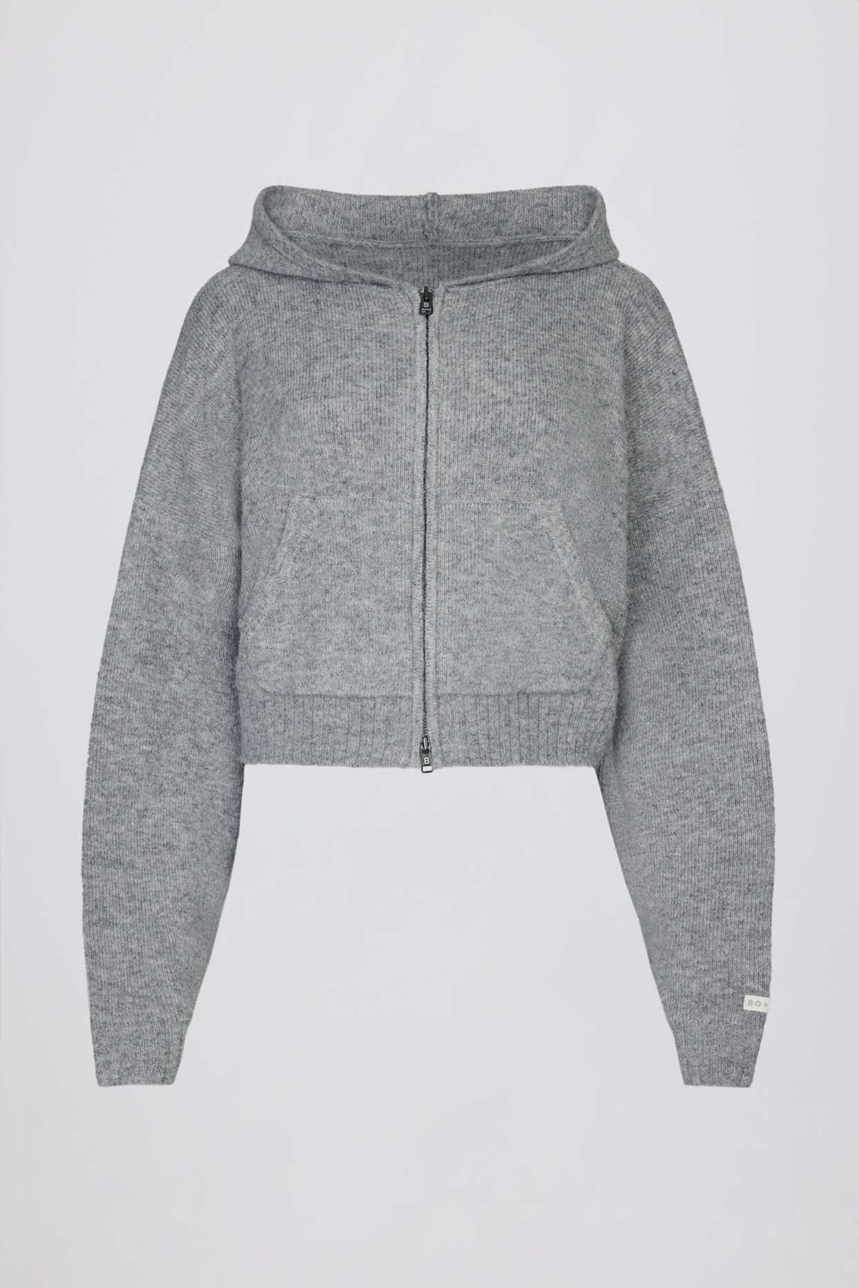 Super soft knit fabric with a delicate, fluffy hand feel. Ribbed collar, cuffs, and hem for structure.
