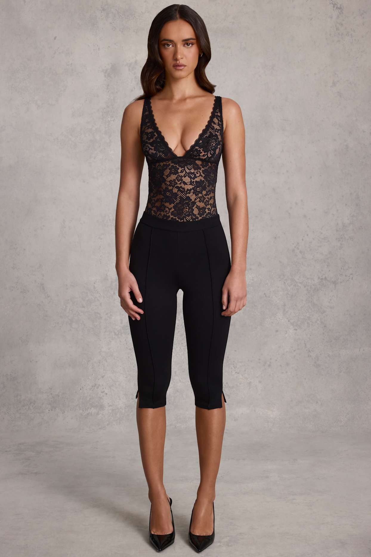 Style with pointed-toe flats or sleek heels to complement the cropped length.