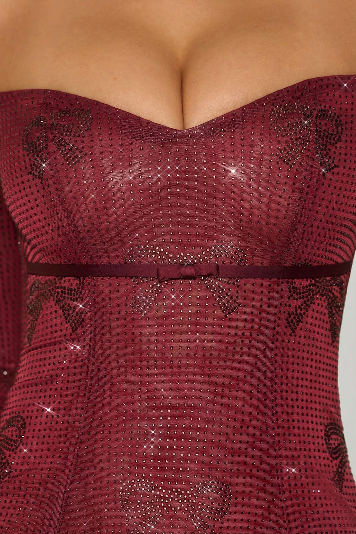 Made from premium double-layered stretch mesh with a soft mesh lining, featuring all-over embellishment for a sparkling effect.