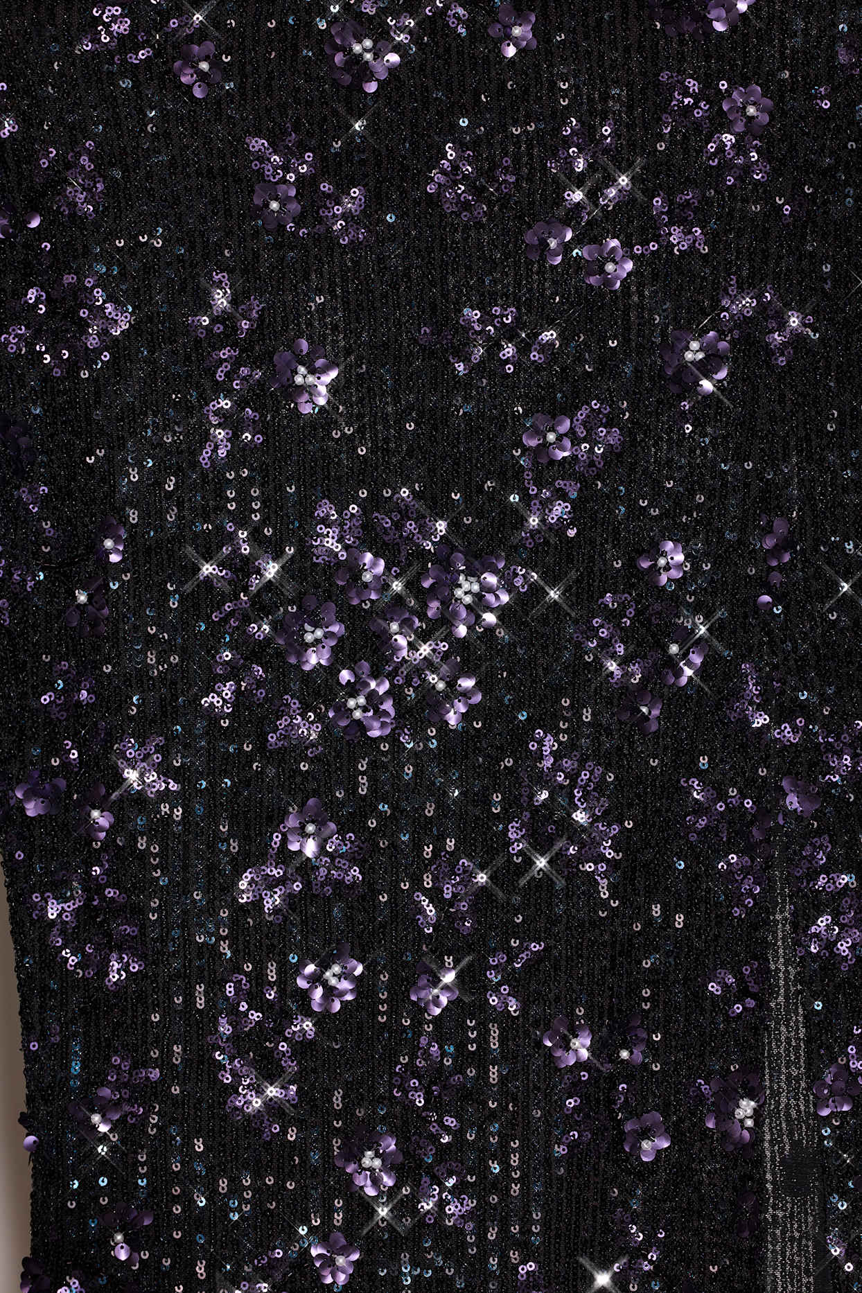 Premium sequin-embellished mesh fabric, fully lined for comfort.