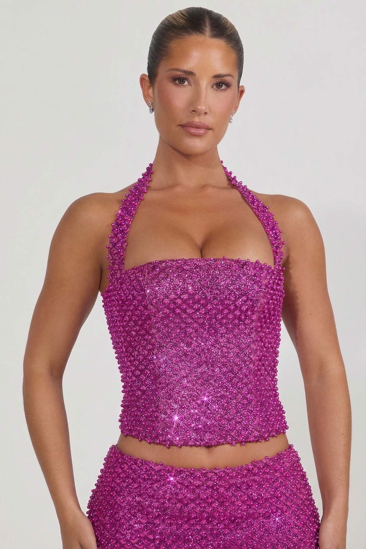 Made from premium glittered mesh with a soft, stretchy jersey lining. Fully lined.