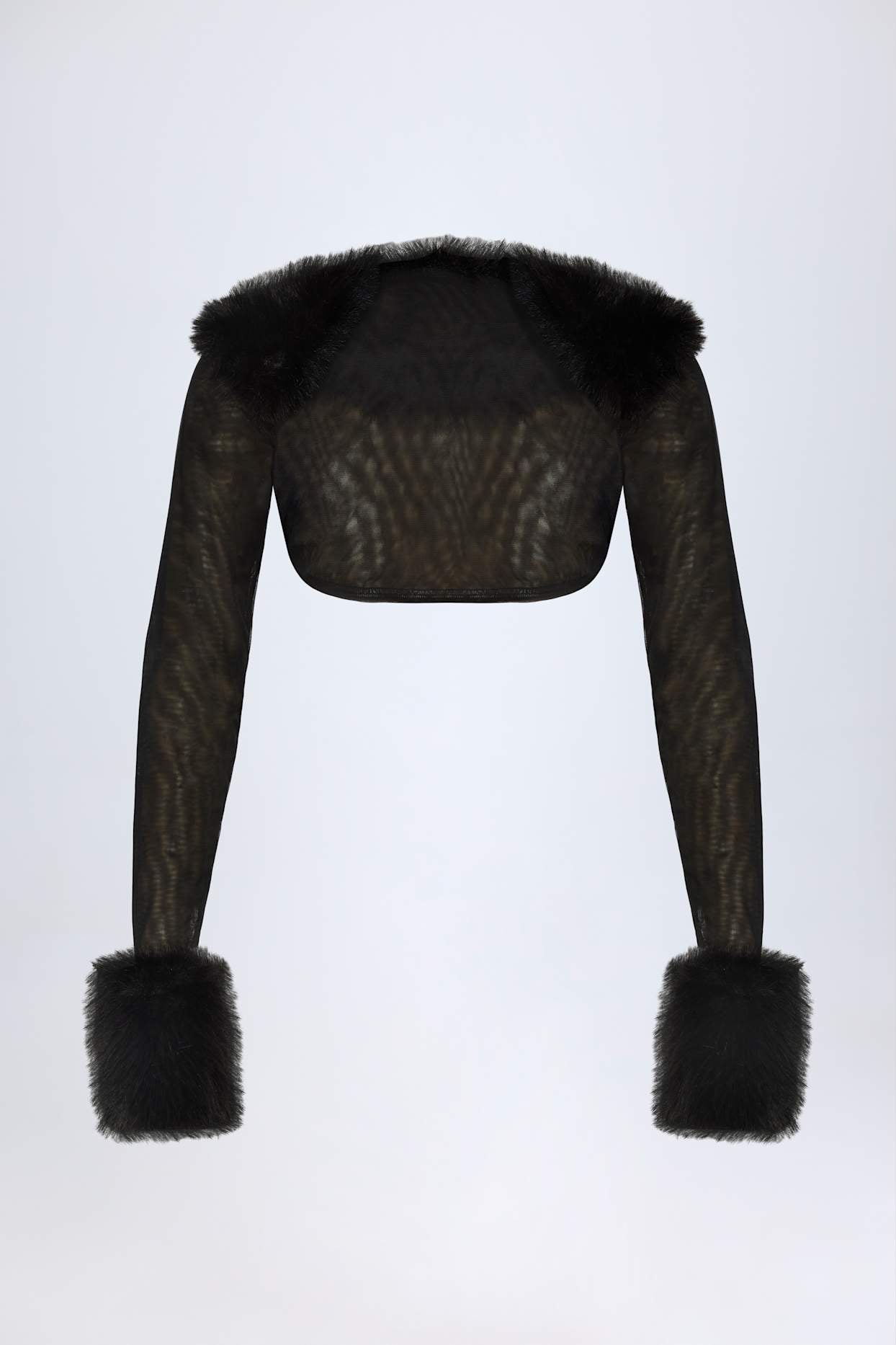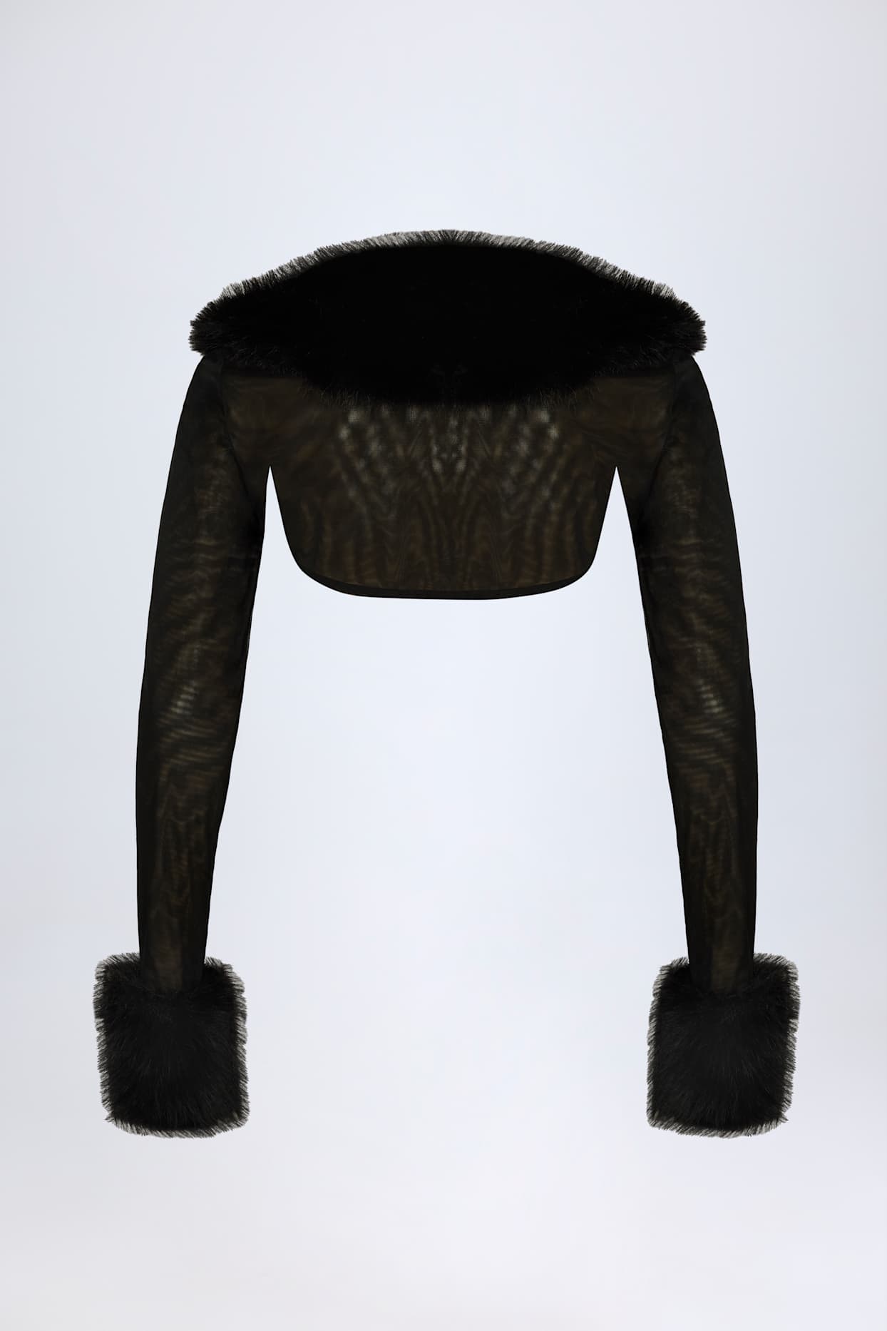 • Made from premium semi-sheer mesh with a faux fur trim. Unlined.