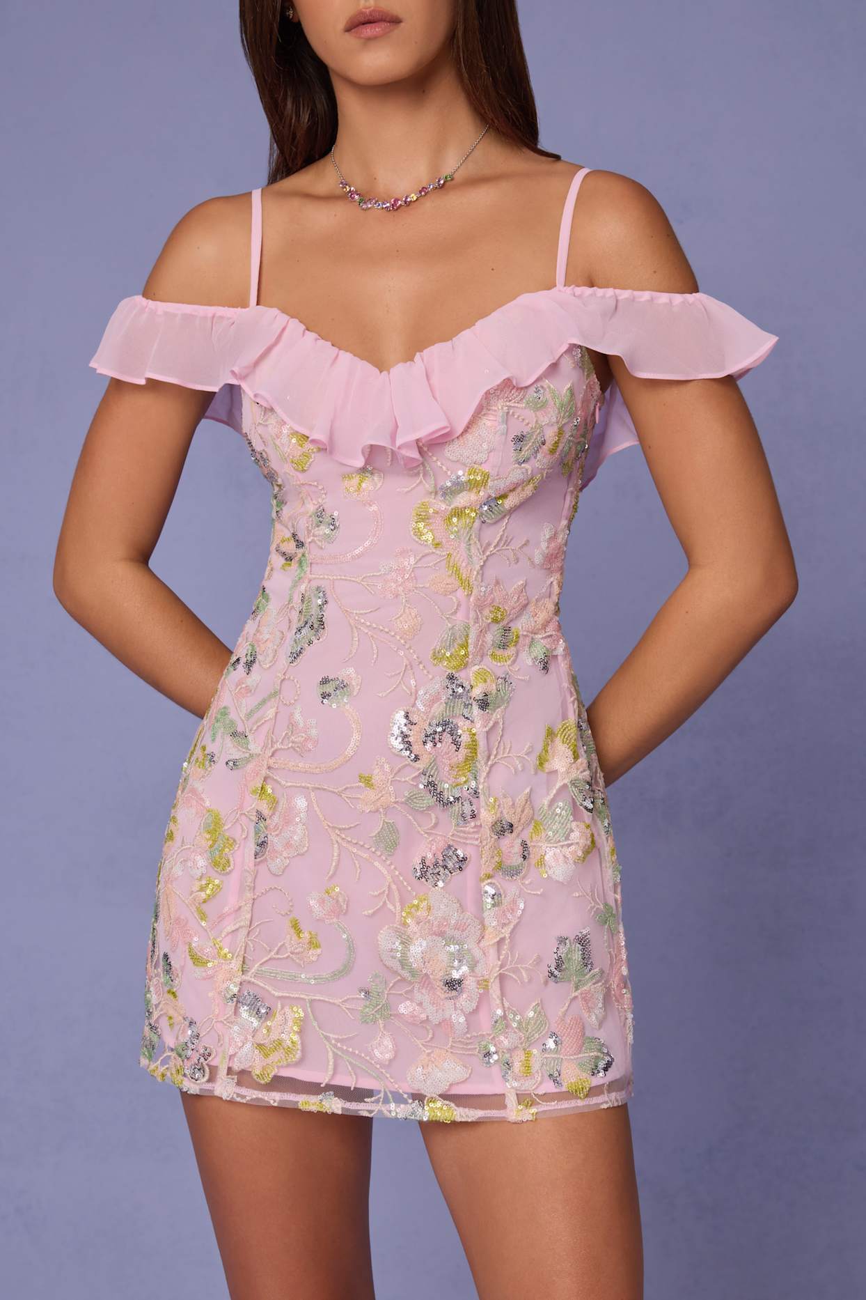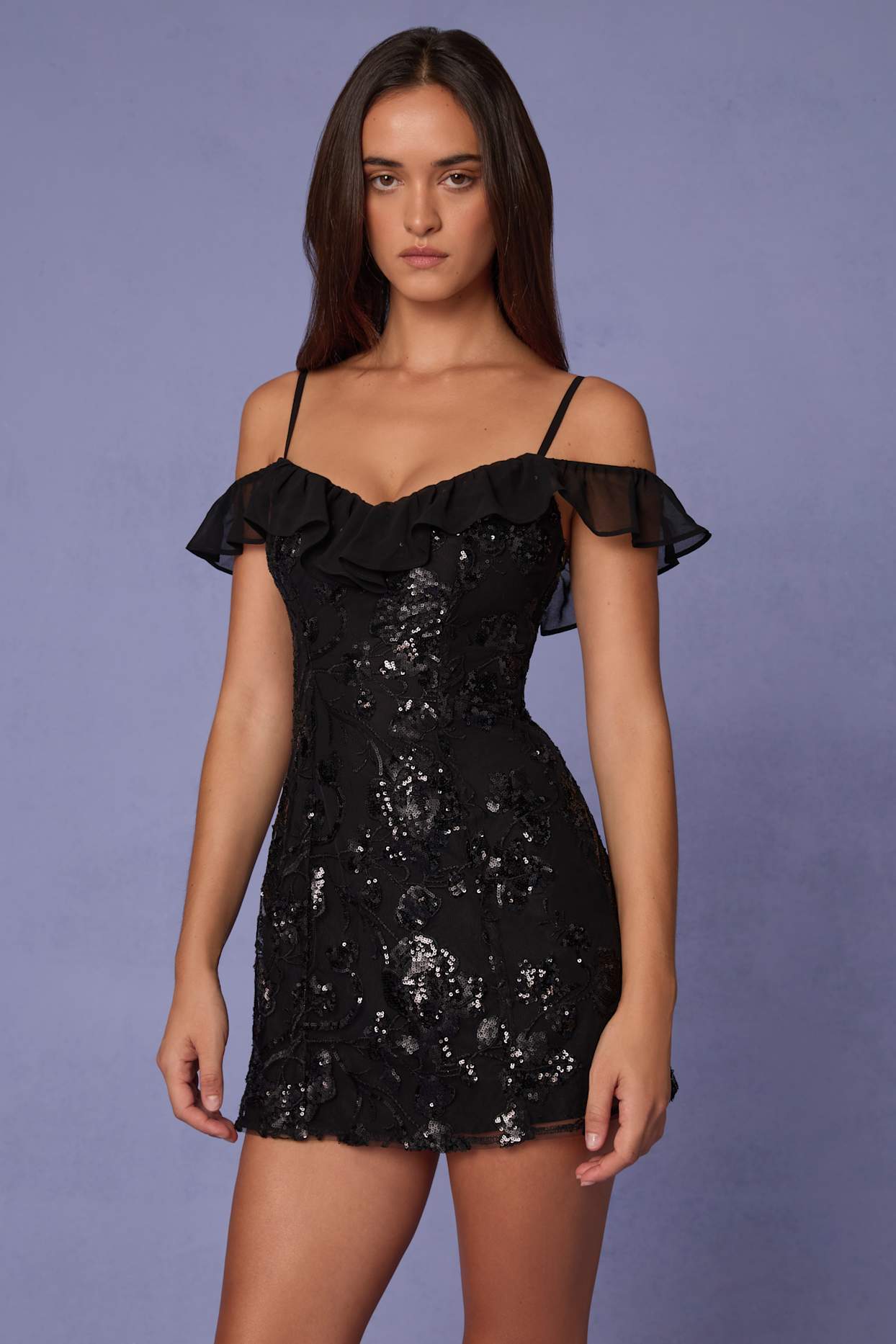 Made from premium dual-lined tulle fabric with delicate floral sequin embellishment.