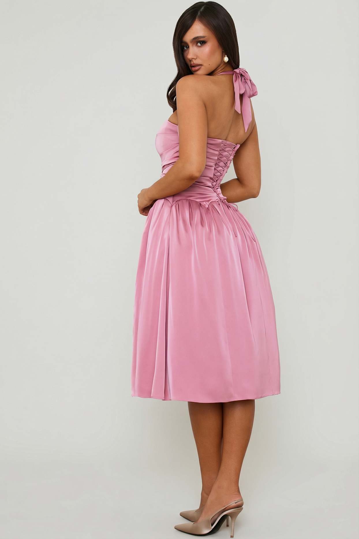 Style with simple drop earrings to let the dress's lace-up back detail shine.