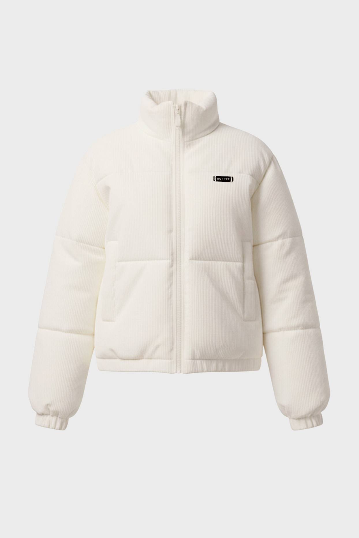 Soft-touch corduroy fabric with insulating padding and quilted design for enhanced warmth.