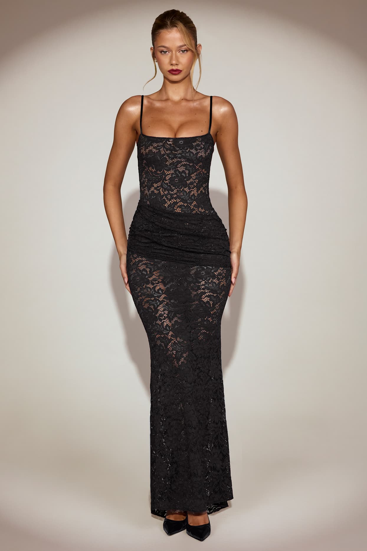 Pair with shapewear for enhanced coverage under the sheer lace.