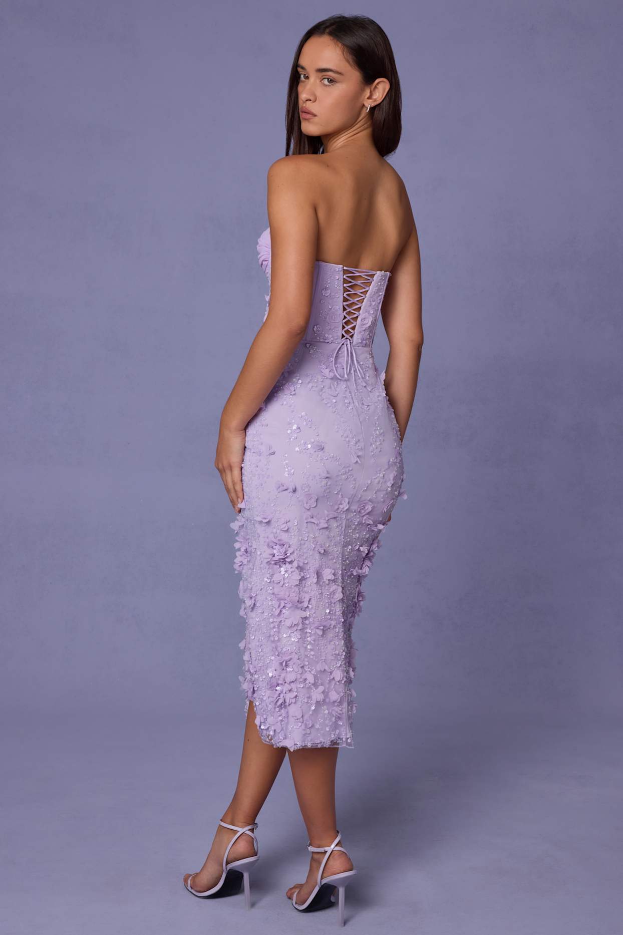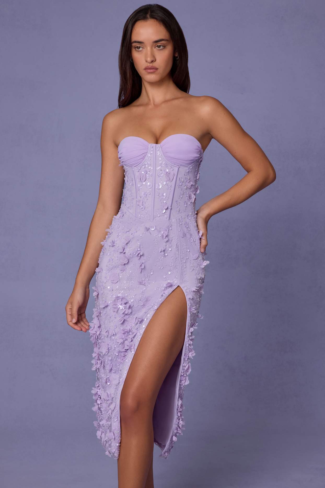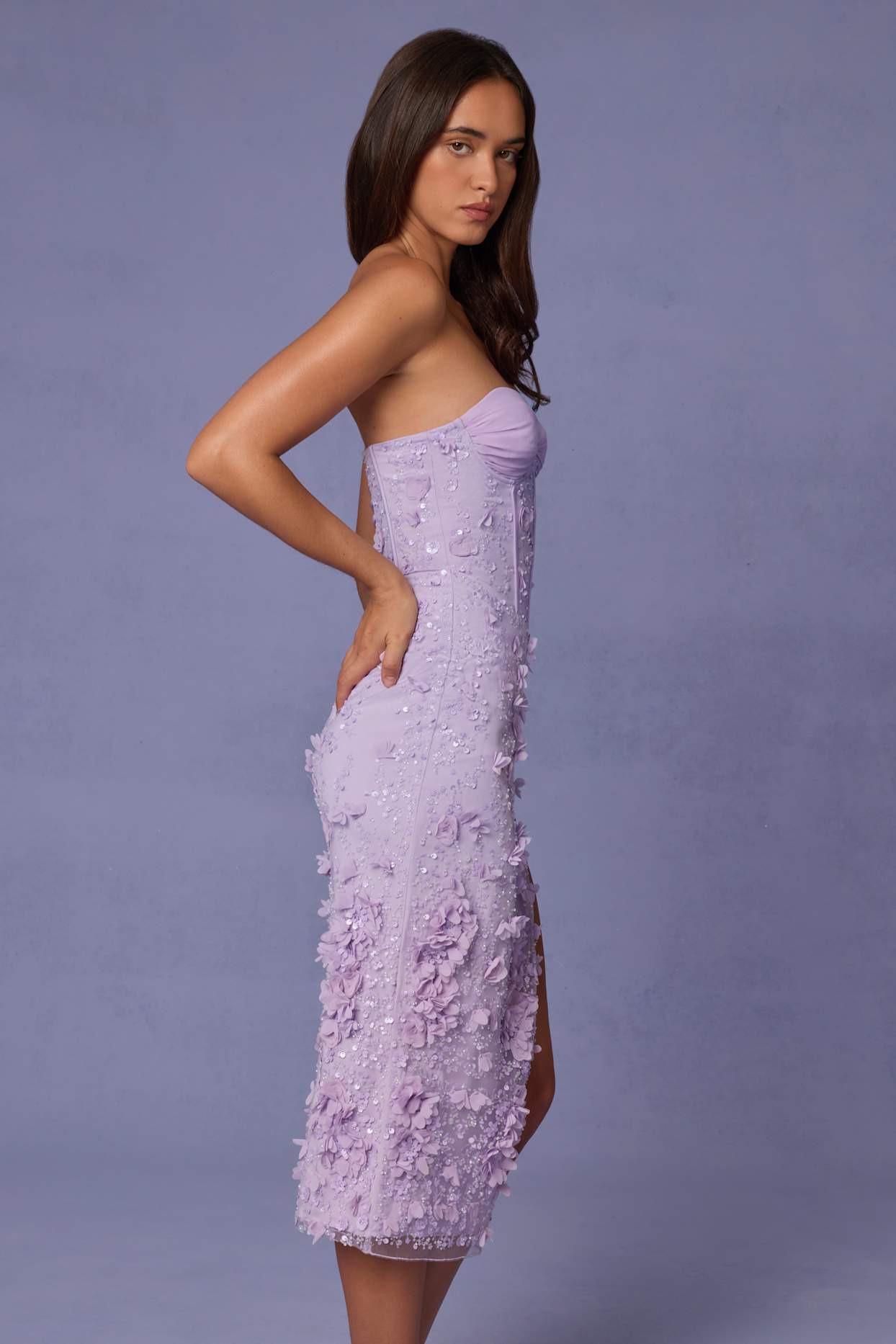 Made from premium tulle fabric with all-over floral appliqués and sequin embellishments. Features a power mesh lining for structure and comfort.