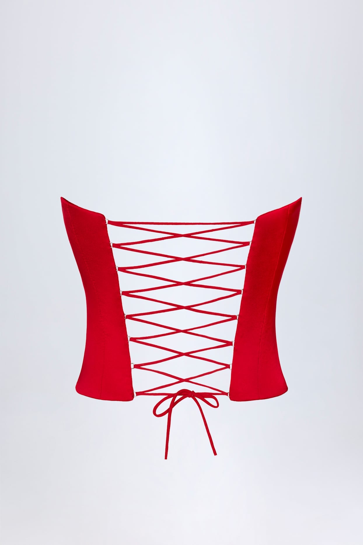 Features built-in boning and adjustable lace-up ties for a structured, supportive fit.