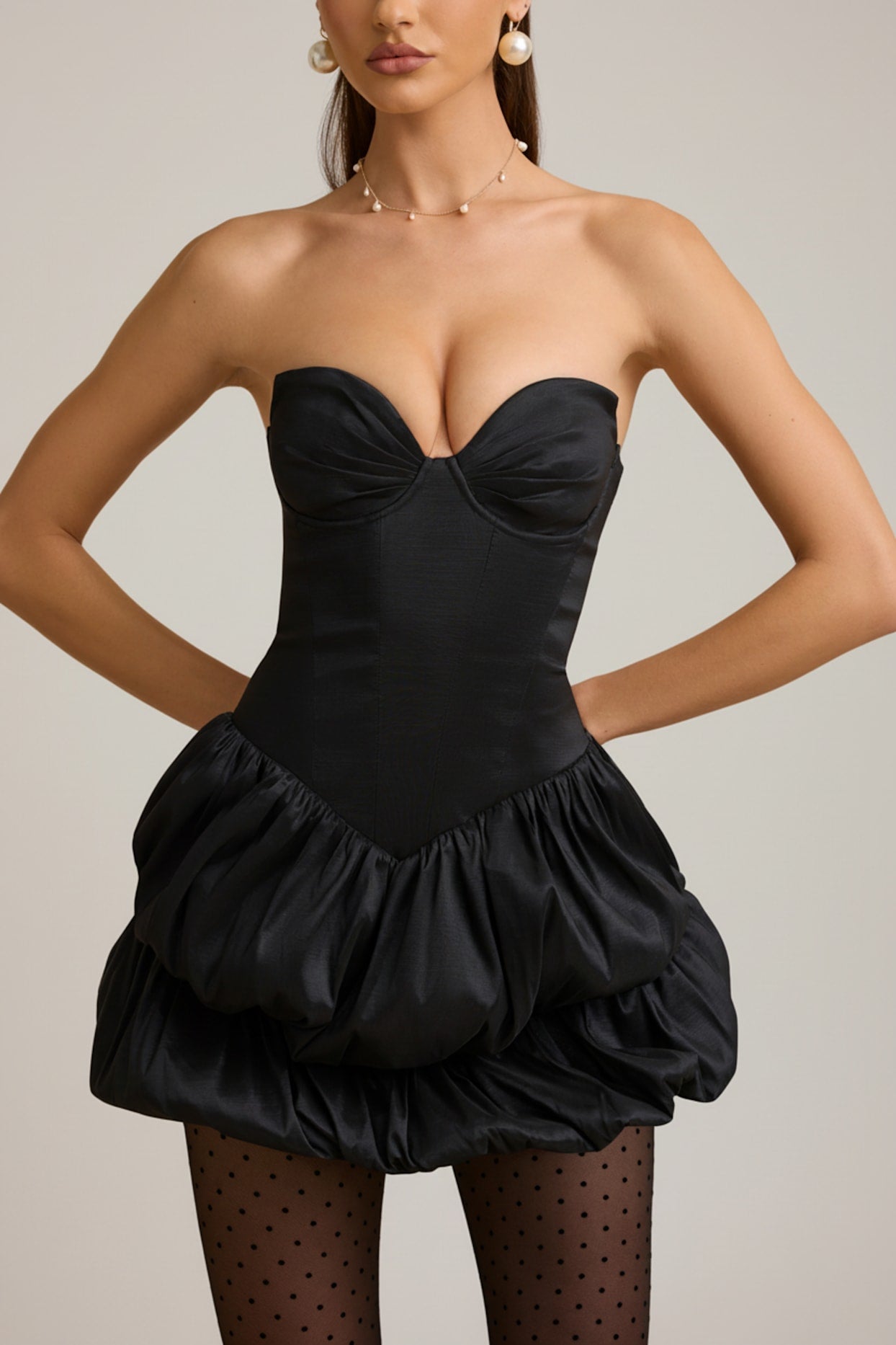 Crafted from stretch taffeta with a satin, georgette, and twill lining. Includes matching jersey shorts for comfort and coverage.