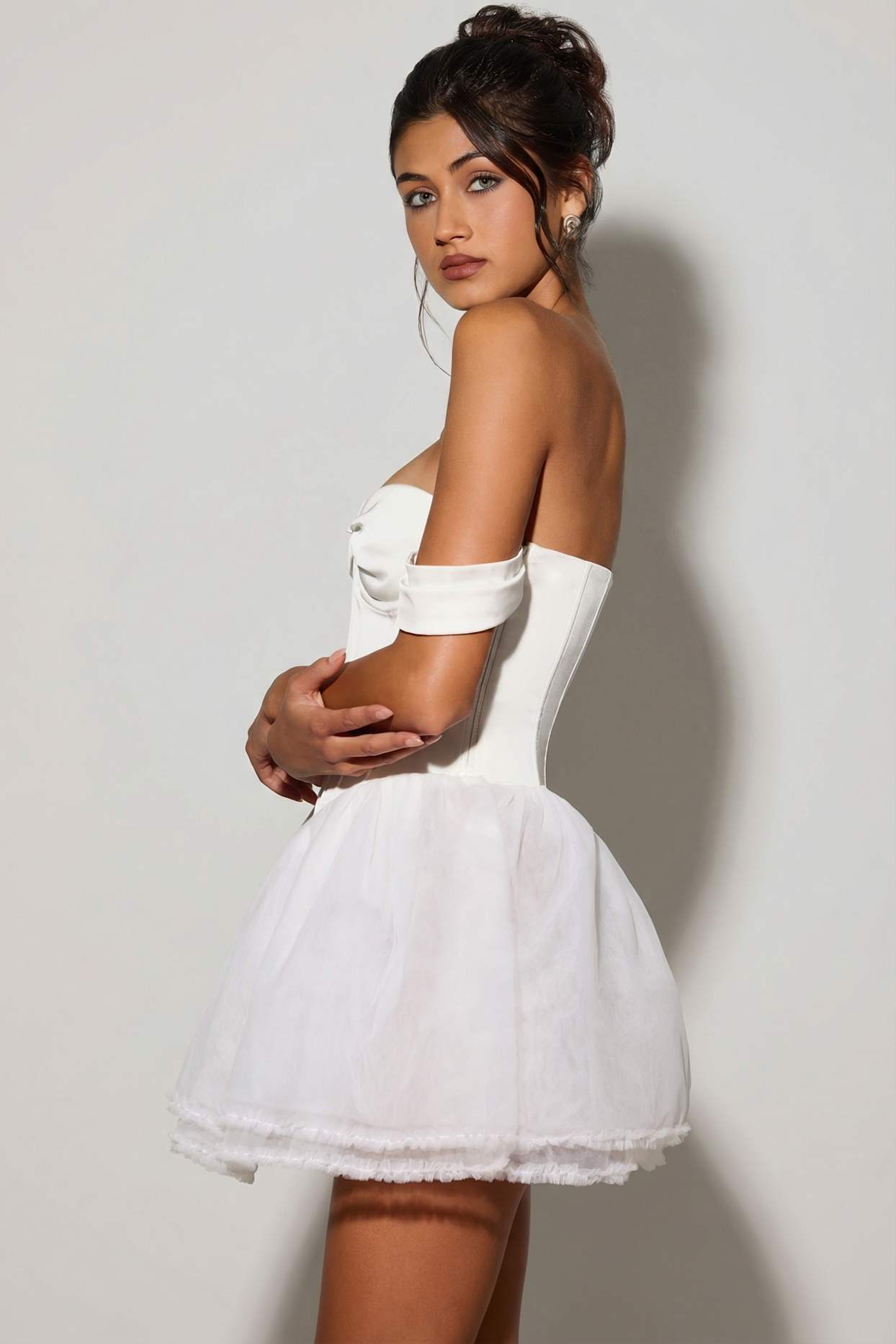 Lustrous satin bodice with stretch-satin lining and a voluminous tulle skirt.