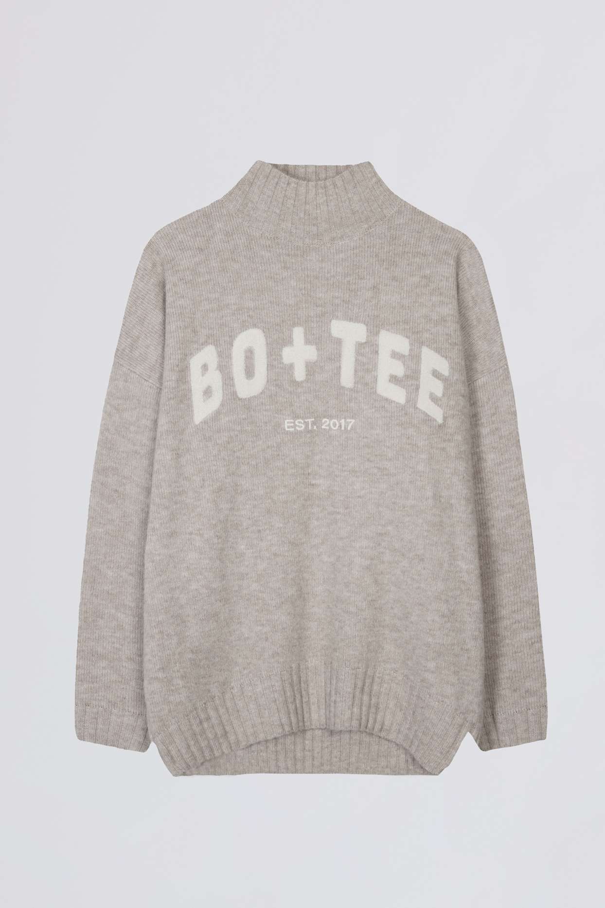 Super soft knit fabric with a touch of wool for breathability and warmth. Features a ribbed turtleneck, cuffs, and hem.