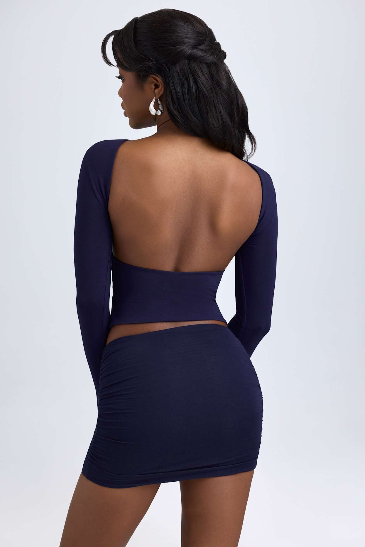 A simple fitted top or bodysuit to balance the skirt's detailed ruching.