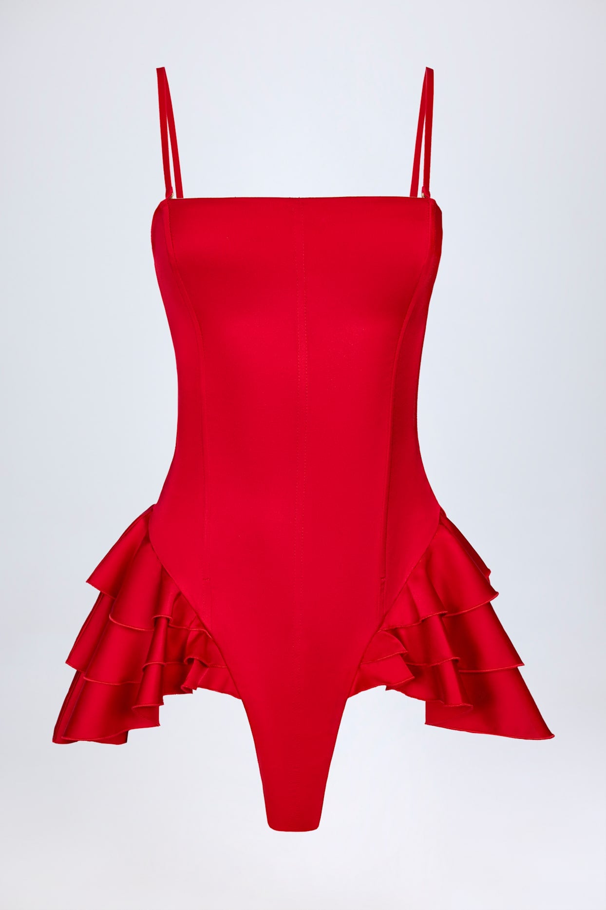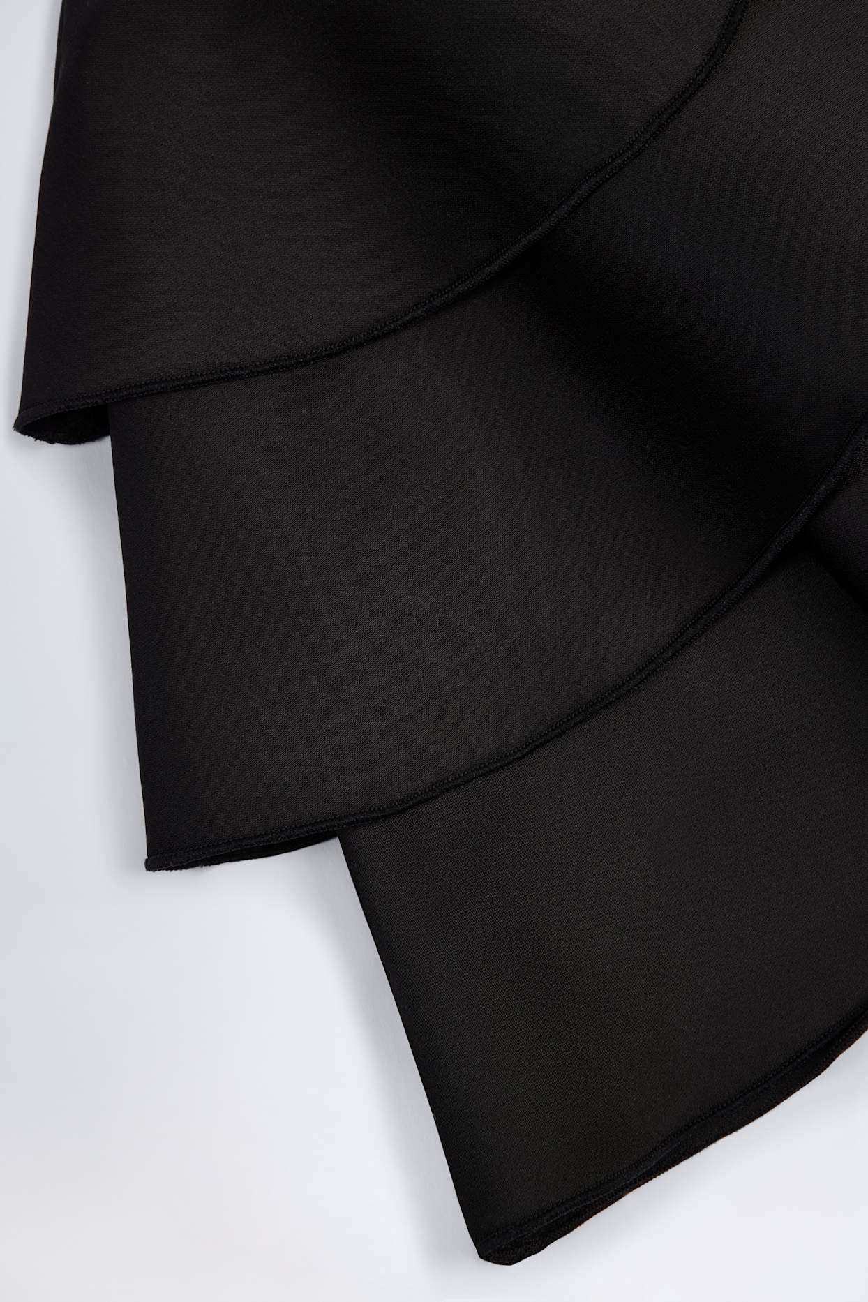 Made from lustrous recycled satin with a fully lined interior and a tiered ruffle skirt.