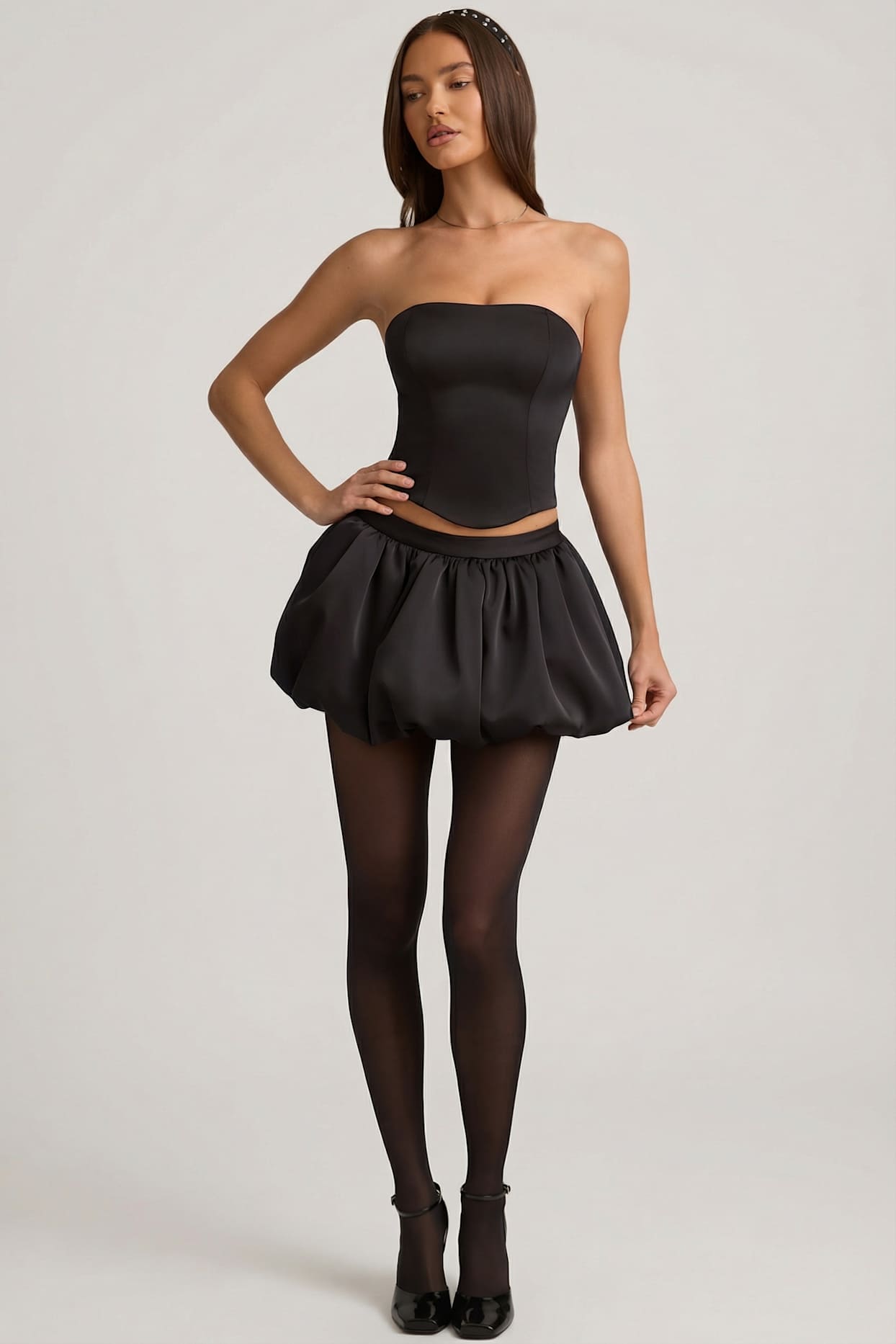 Crafted from premium, non-stretch bonded satin with a voluminous organza underlayer and stretch-satin lining. Includes matching jersey shorts for coverage.