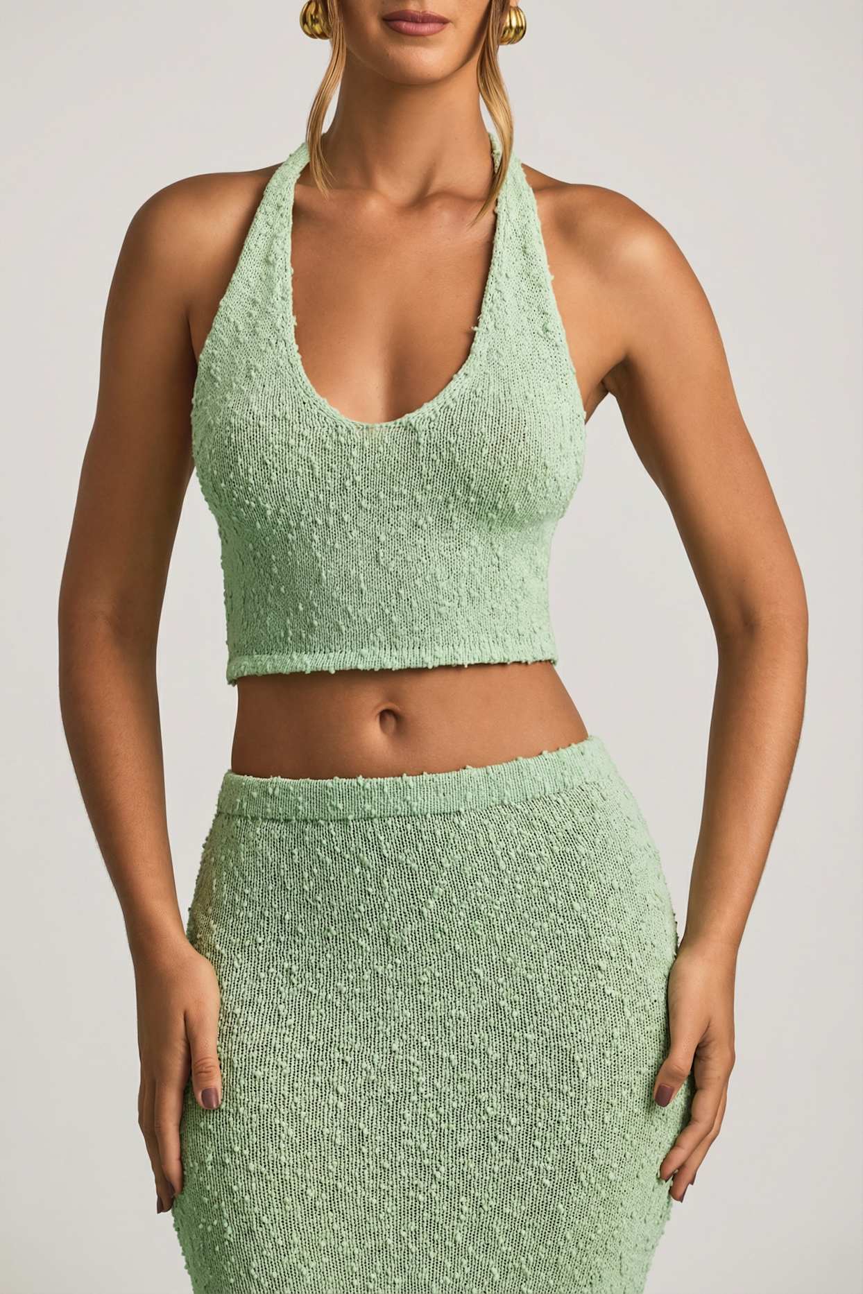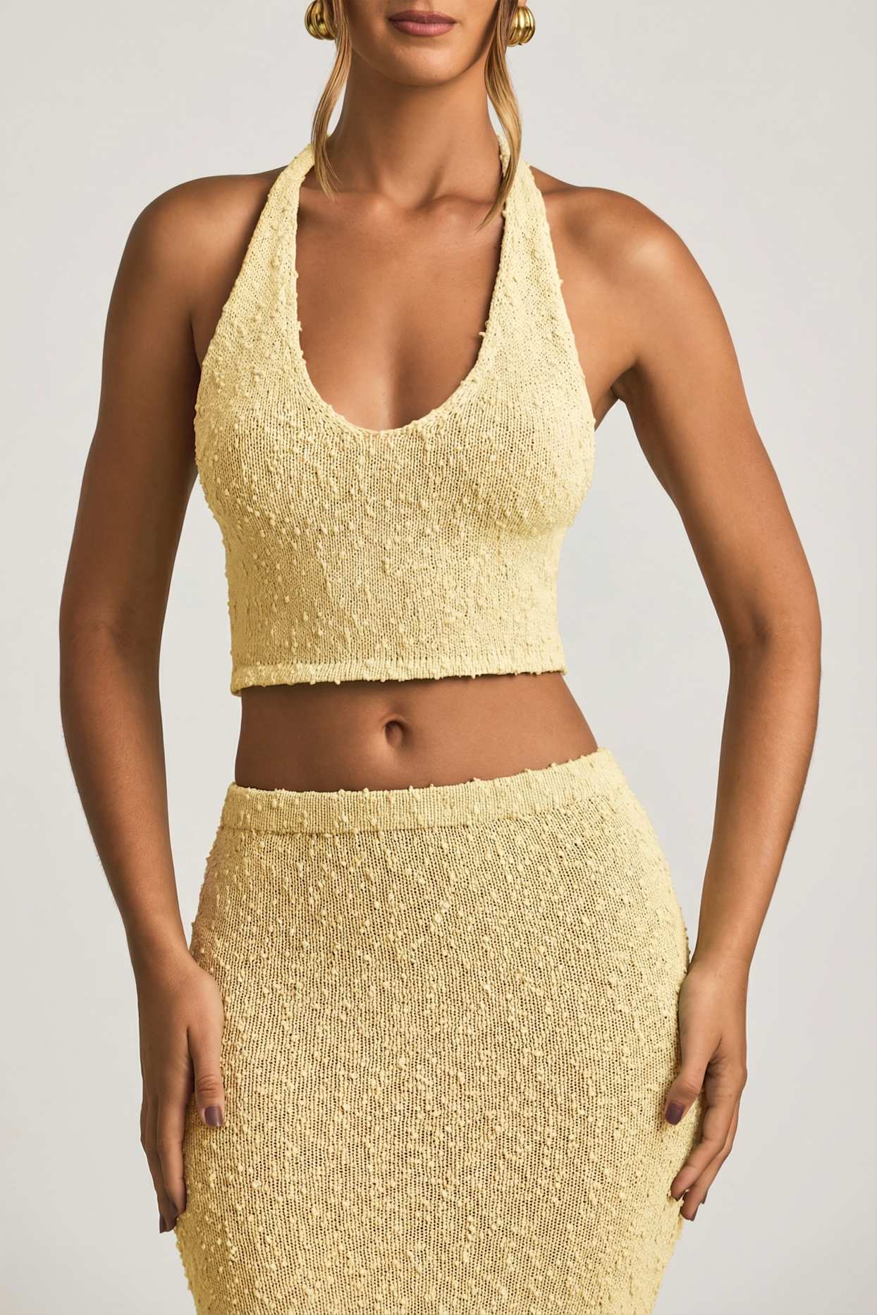 Made from premium, subtly sheer and stretchy bouclé knit fabric. Unlined.