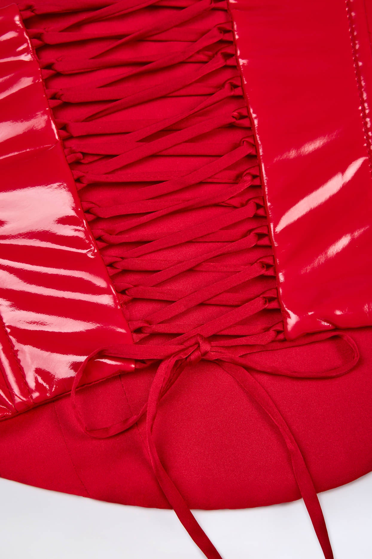 Crafted from premium high-shine vinyl for a sleek, glossy finish. Fully lined for comfort.