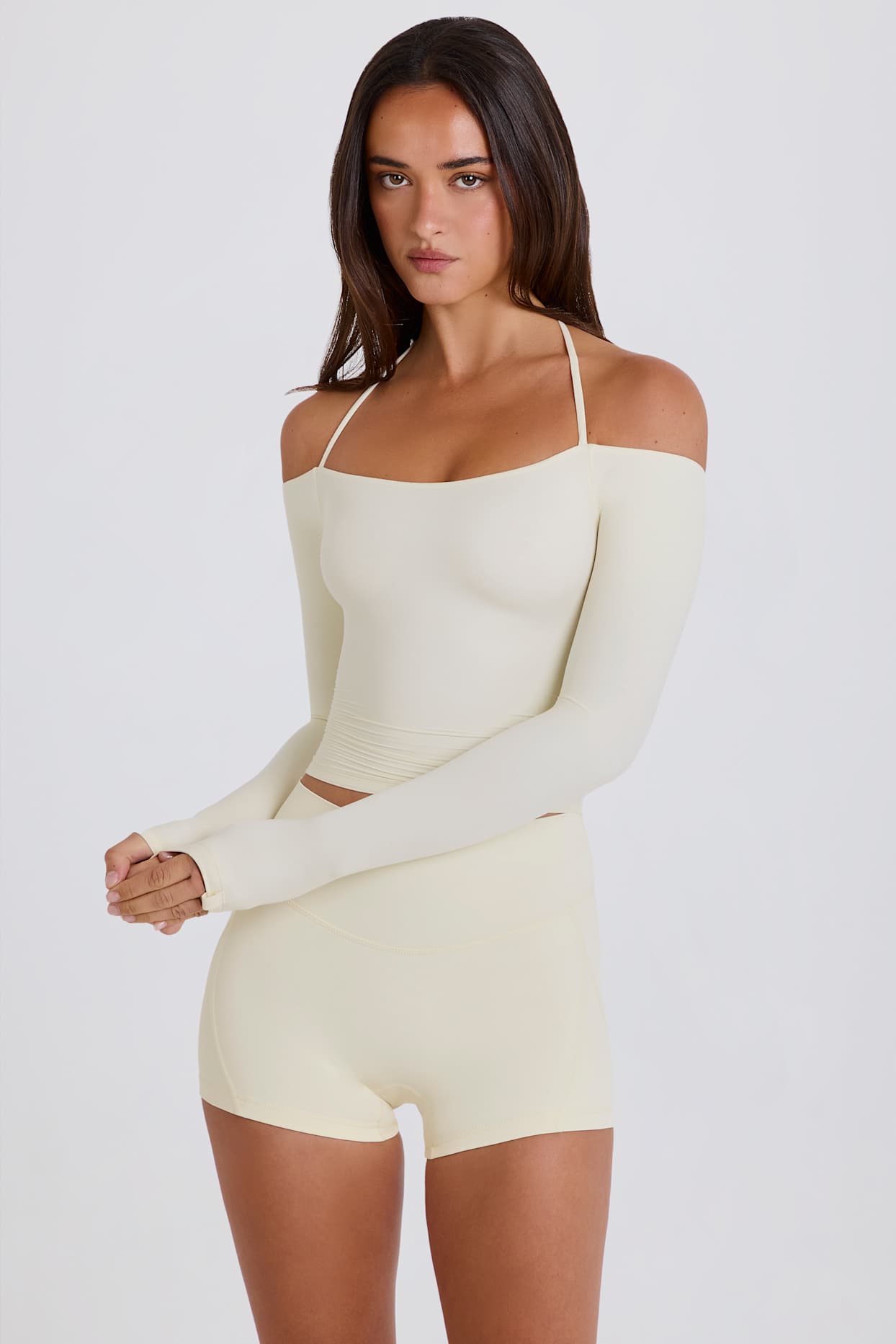 Composition of seventy-nine percent polyester and twenty-one percent elastane for a gentle, flexible fit.