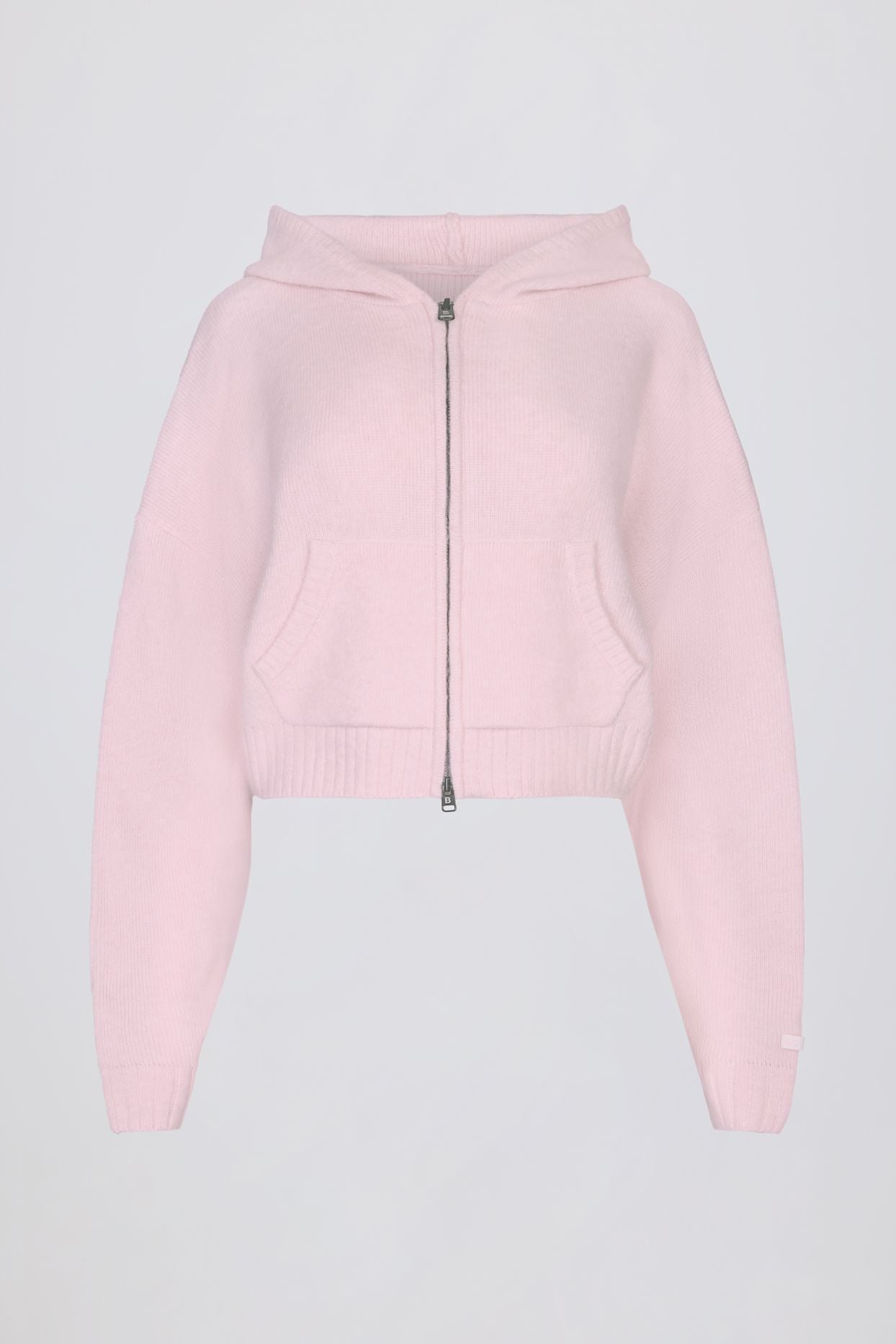 Crafted from a super soft knit fabric with a delicate, fluffy hand feel. Features ribbed collar, cuffs, and hem for a polished finish.