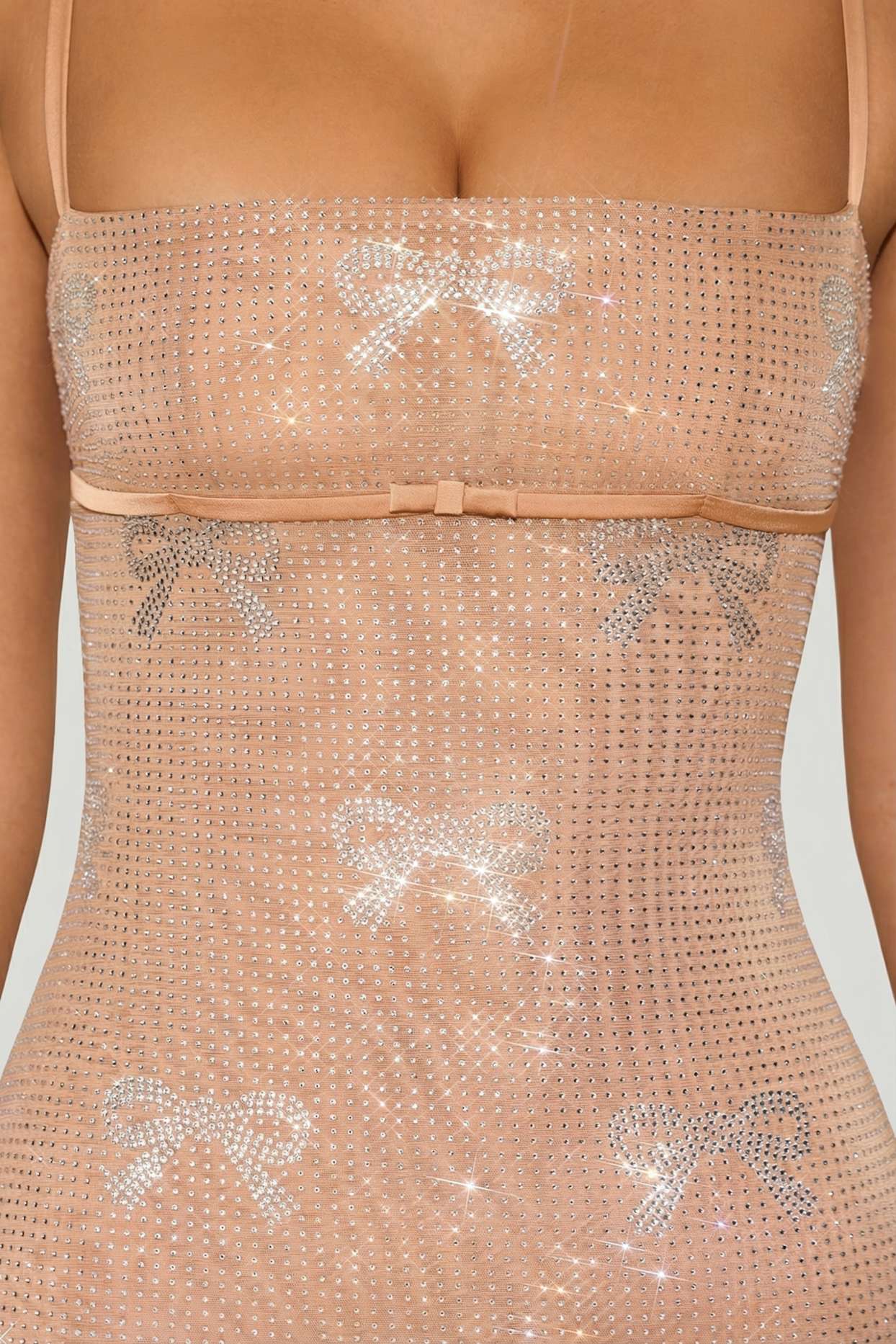 Double-layered stretch mesh with soft mesh lining and all-over embellishment.