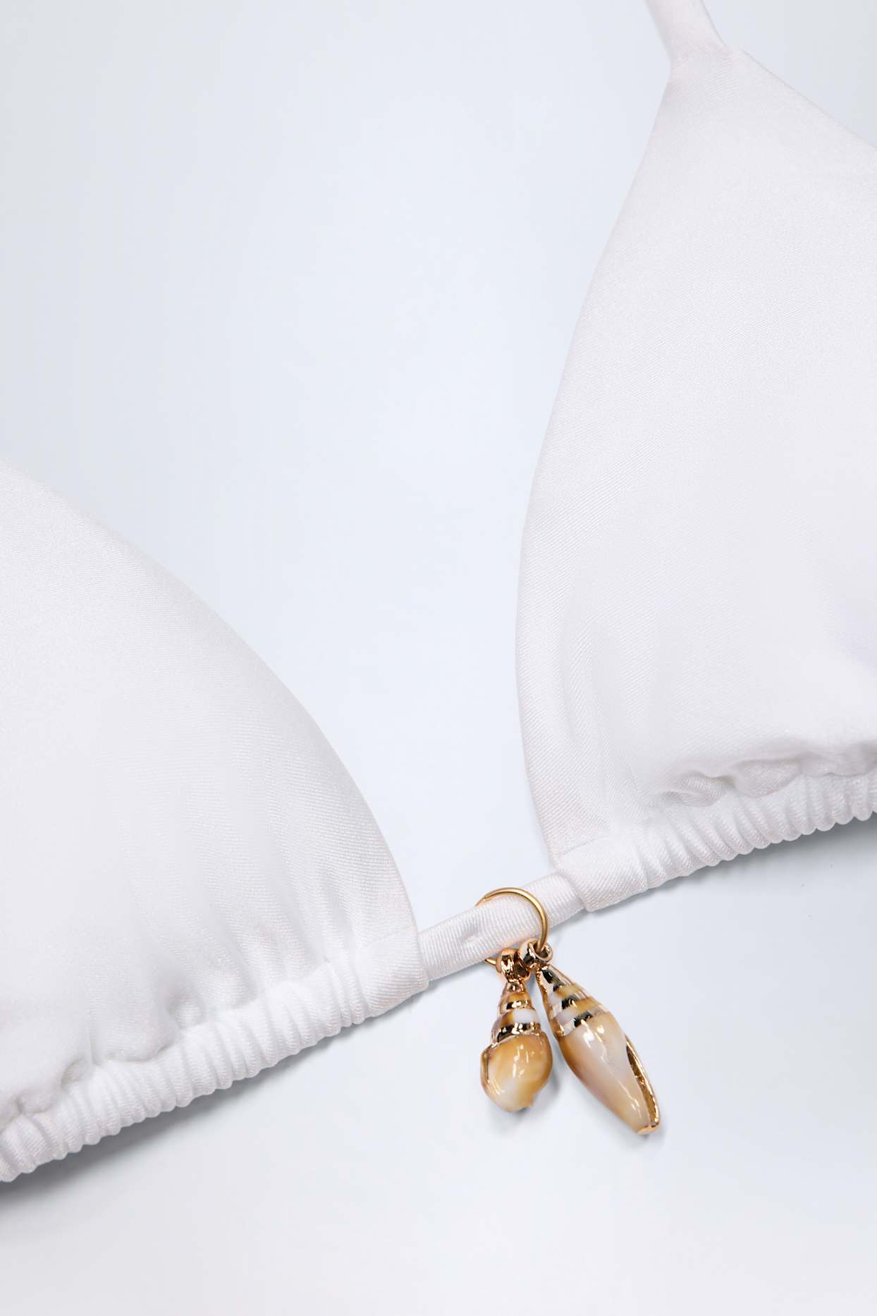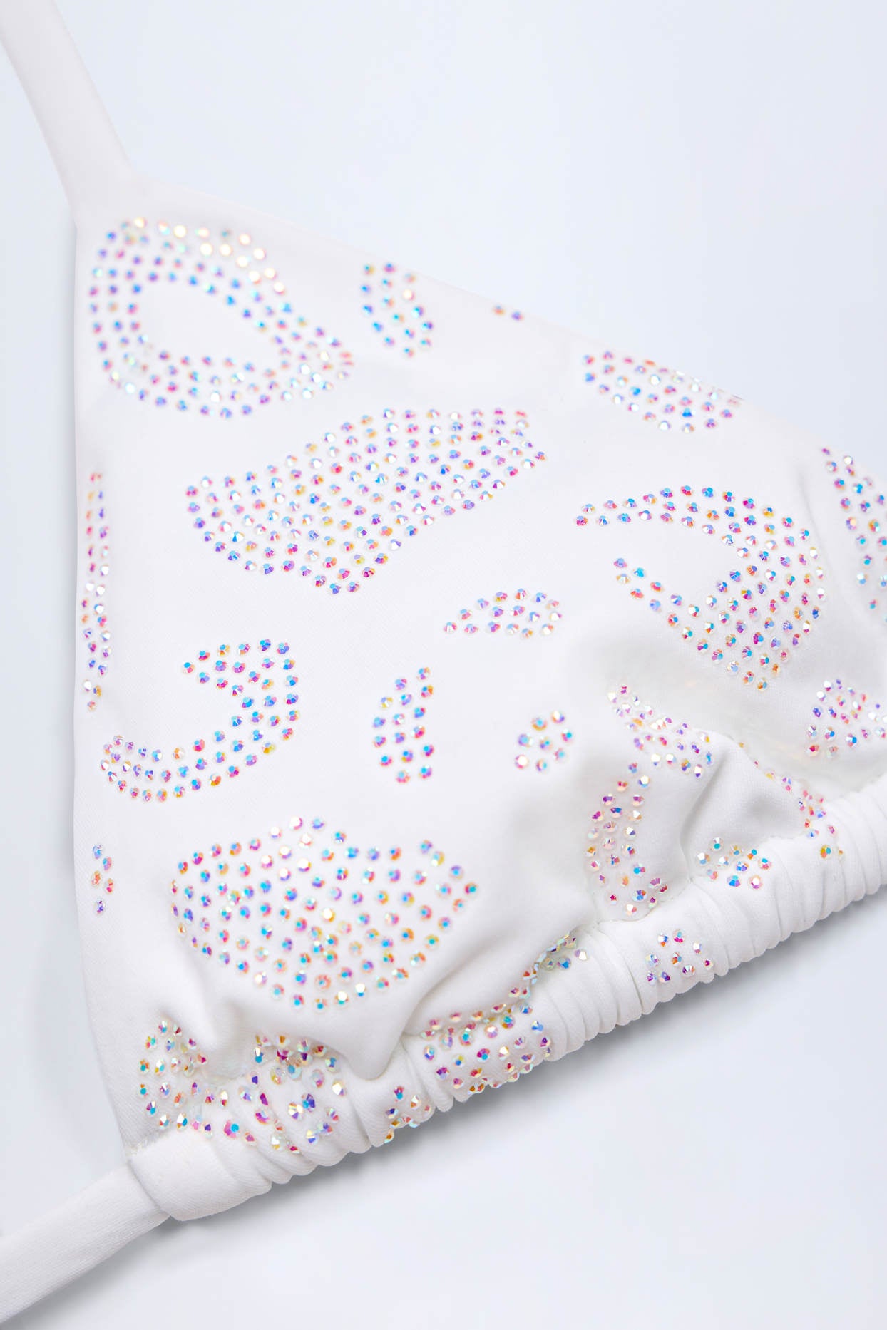 Fully lined with a classic triangle cup shape and ruching at the underbust.