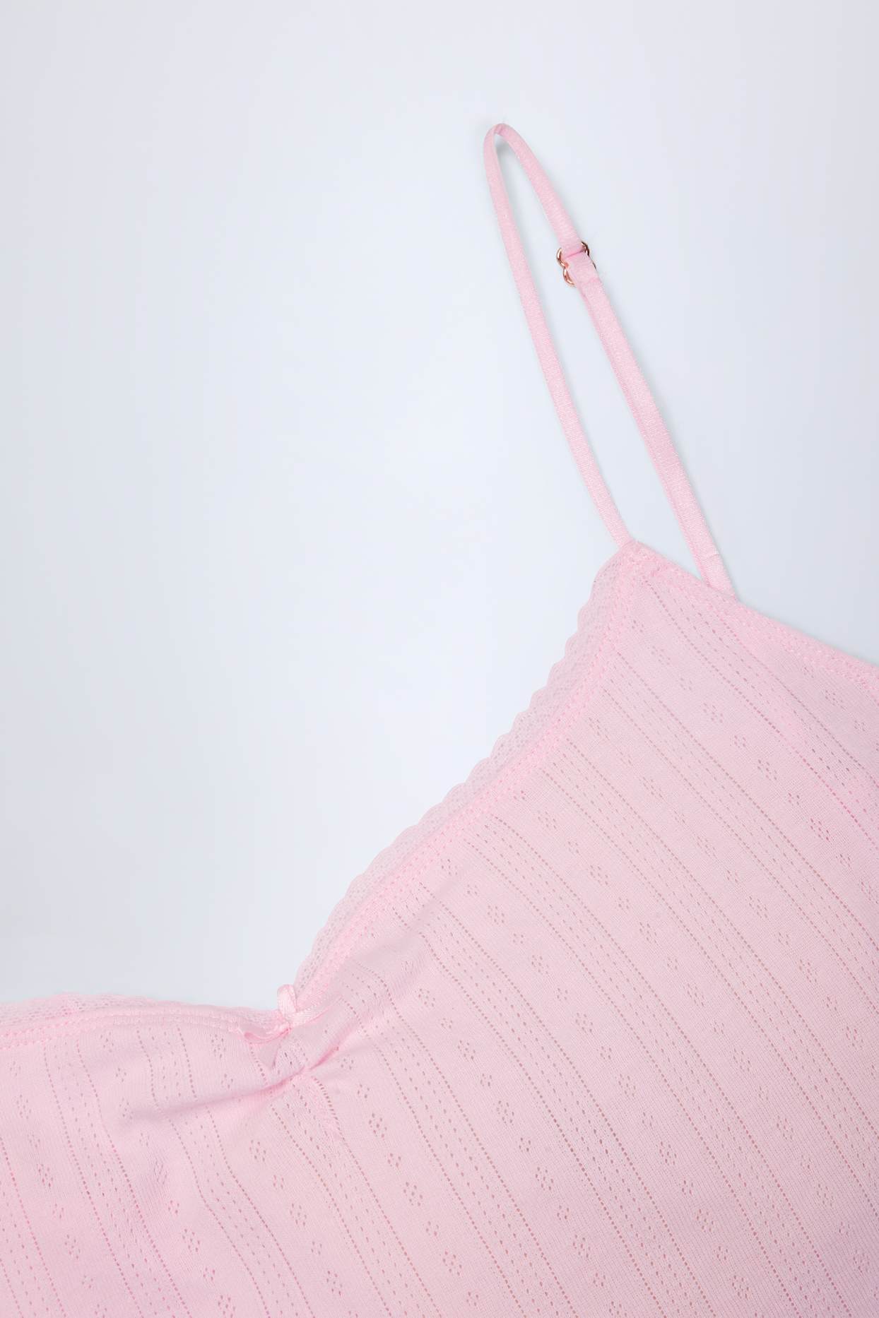 Made from premium, soft and lightweight cotton jersey with a pointelle texture. Unlined.